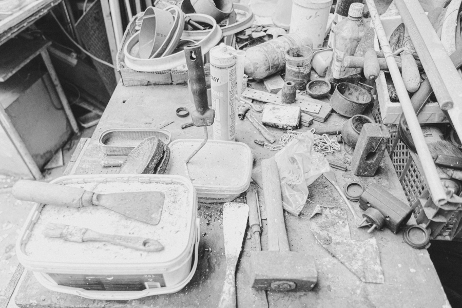 Autour d'une tasse de café, il me raconte son histoire, sans se rendre compte qu'il ne me parle presque que de sa femme. Sa voix est teintée d'une légère mélancolie et d'une profonde solitude alors qu'il me partage une, puis deux, puis trois anecdotes sur elle. Une fois le café terminé, nous nous lançons dans une exploration des lieux à l'image du désordre et du chaos qui règnent dans sa maison. Nous commençons par son "showroom" où, sous les toiles d'araignées, les œuvres se dévoilent progressivement, révélant un personnage, une tour, une armée, une main, et bien d'autres encore.
