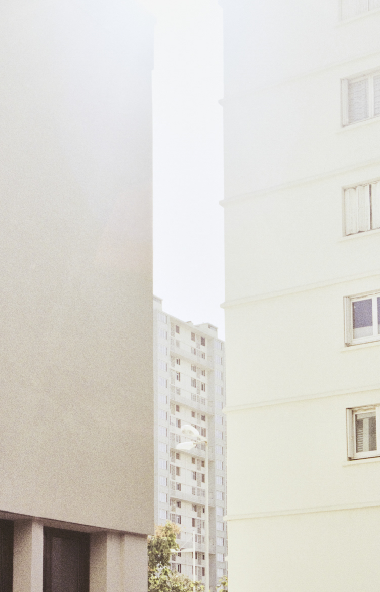 Cette réinterprétation de la ville est passée par un écrasement des couleurs, principalement dû au choix de mon médium. En raison de la perte de sensibilité des pellicules expirées, la surexposition des négatifs est devenue une évidence pour représenter cette ville écrasée par le soleil.