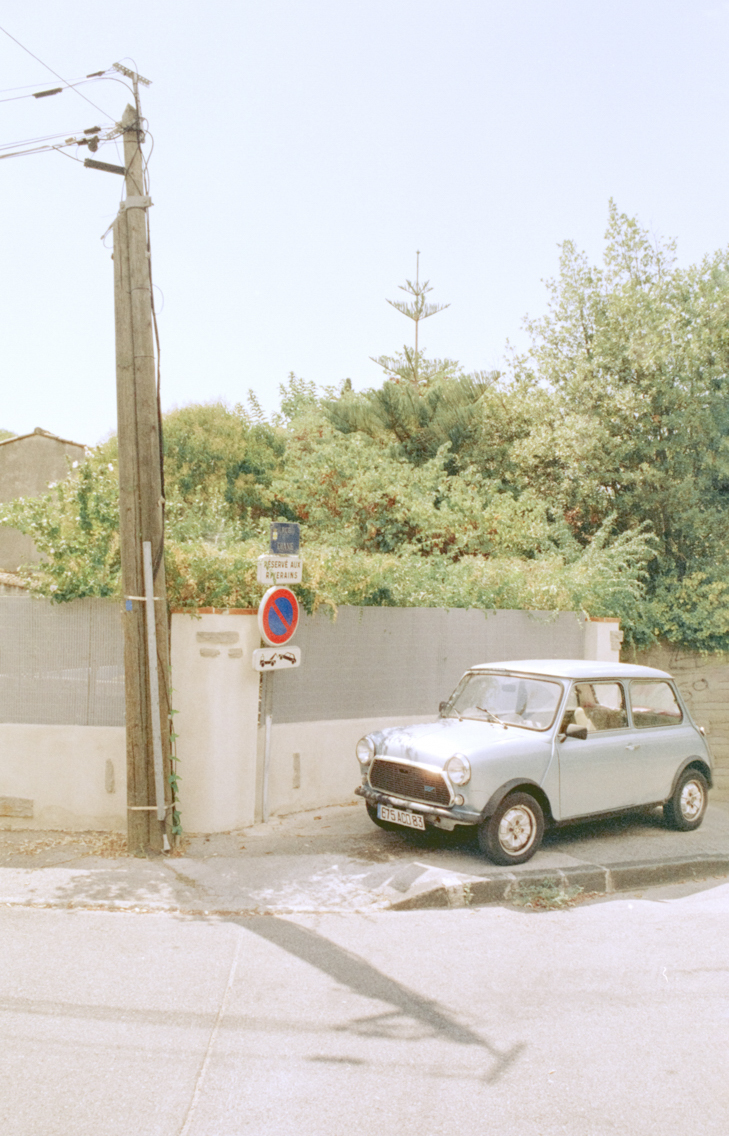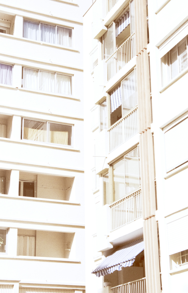 Frappée par l’atmosphère et les couleurs de ces rues, je me suis aventurée à travers ces décors méditerranéens, munie d’un appareil argentique et de pellicules périmées. Une ambiance singulière émanait de l’architecture, comme si les rayons du soleil avaient généreusement peint les immeubles et l’asphalte d’une palette de couleurs jaunes, roses et bleues.
