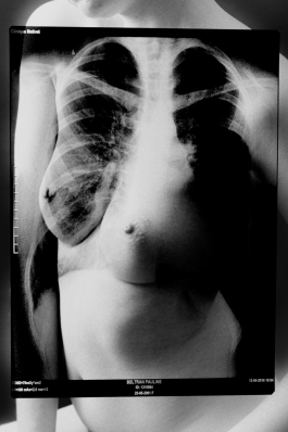 Depuis peu, ces images ne sont plus seulement des réminiscences de douleurs passées, mais également des matériaux bruts inspirants pour ma pratique photographique. À partir des radios originelles, j'ai utilisé plusieurs techniques telles que la superposition et le tirage argentique dans le but de me rapprocher d'une perception alternative de ce corps irradié.